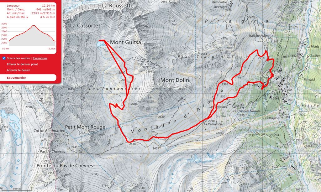 The start point for the walk is the small car park just above the Arolla village*, though it can be done from the village square if catching the bus – simply walk up the road to the parking area.