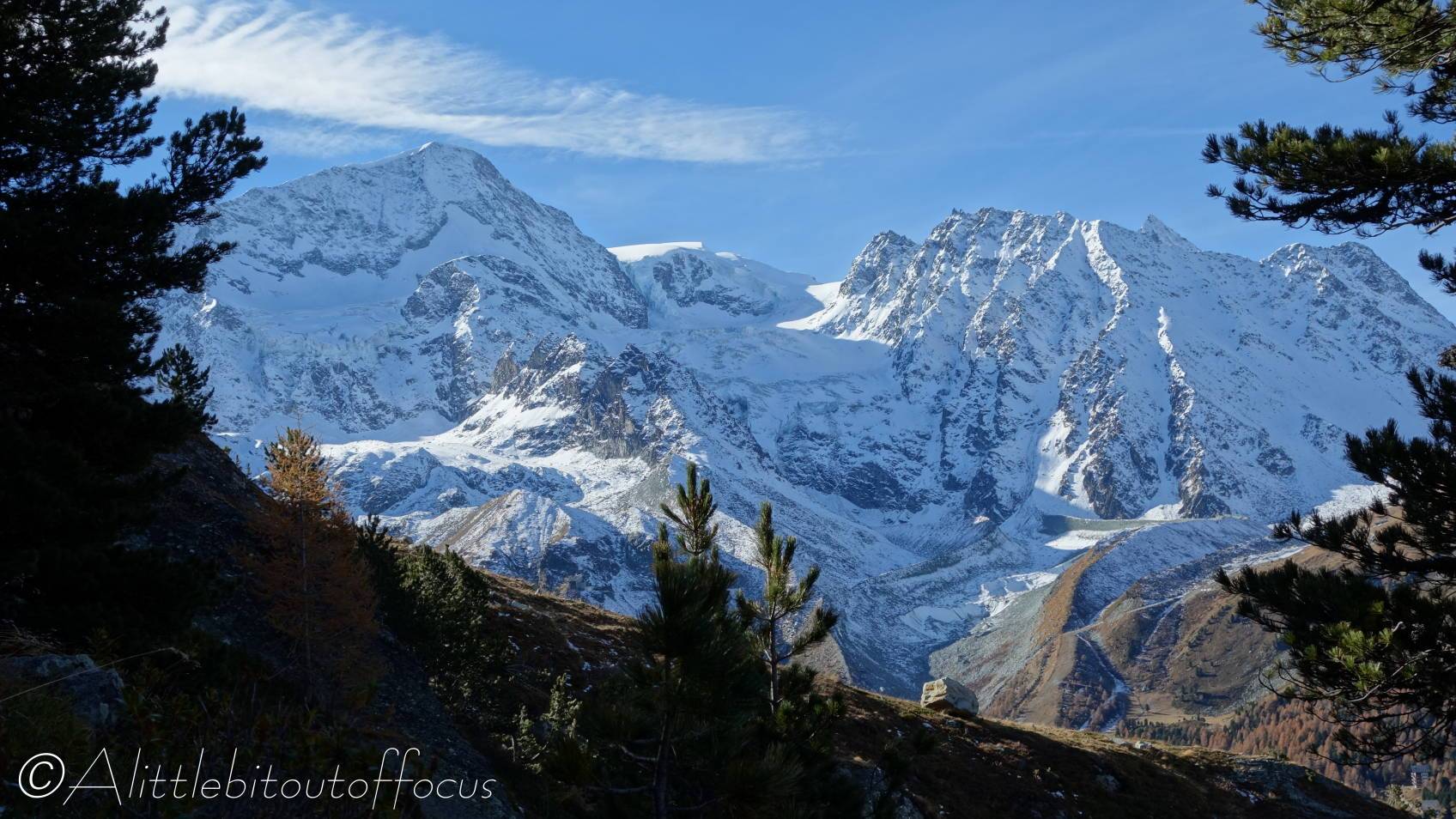 - Ignore the path on the left (which goes along the valley floor by the side of the river) and continue upwards, passing a big boulder on your right). The path to the cabane is now clear (since it’s the only one). Follow it up through the woods until it eventually emerges above the trees. Don’t forget to stop for a breather and take in the magnificent views behind.